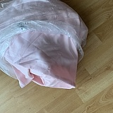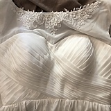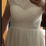 The wedding dress arrived looking completely different from the website photo. The bag arrived already torn open with a large hole in the bag. The dress is at least 25 inches longer than specified in my custom measurements order. The dress was much too wide and large and looked/felt like extremely cheap quality. The dress smelled extremely bad with a strong stench of chemicals and gasoline that made the entire apartment reek.