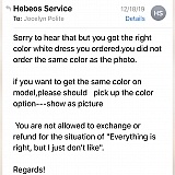 Pt. 2 I asked for company information so that I could pursue a refund and they told me "we are in Hong Kong and that's all you need to know." They also continued to email rude responses to my requests. DO NOT order from Hebeos! Total Scam! Merchandise does not look anything like the pictures!