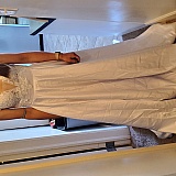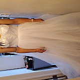 Ended up canceling my order because they could not fulfill my order with the dress advertised. The dress was discolored, yellowish tinge, buttons were uneven with gaps between the closures and lace was not uniform. They did try to get me to take the dress at a discounted rate because it was custom sizing but we could not come to an agreement on the % so they provided a full refund. Although the dress was not acceptable, their communication in letting me know about the discoloration prior to any shipment was, as it allowed me to see everything prior to recieving something I would not wear. So the stars are for their communication.