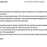 To my surprise, the customer service representative was unhelpful and unsympathetic towards my situation. Not only did they refuse to offer me a refund, but they also insisted that I donate the dress to a charity instead. I was appalled by their lack of responsibility and disregard for my needs as a customer.