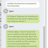I emailed Hello Fresh customer support, no response. I wrote to them in chat and waited 30 minutes or the reply. Left for 5 minutes to the washroom and returned to a message from agent who replied to my detailed complaint: "Sorry, I haven't heard from you and ended the chat!"