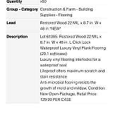 I won a bid on flooring which was described as new, open box, retails $129.99/box X80. Actually was 80 sq ft!