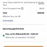 Was quoted amount for lawn service to be done twice a month for one monthly fee. Come to find out, amount would be charged twice a month.