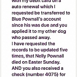 They applied one of my payments to my DECEASED DOG instead of Blue's.