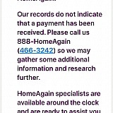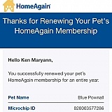 They applied one of the payments to a deceased dog I had that died on Easter Sunday morning, and I asked Home Again to update their records with THREE phone calls!