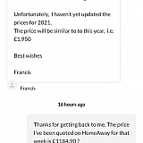 Then, later in the evening the owner emailed me saying the house would cost £800 MORE than the first price to reflect next years fees.
