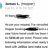 After having no luck over the course of more than 2 weeks reaching out to Hopper via their app and social media accounts, they did finally reach out to me thanks to a previous review on this site. They have offered to take corrective action over my concern, and I am satisfied with the resolution.