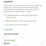 I paid 46.00 for delayed/cancelation protection and when I followed the Hopper instructions to quickly rebook on next flight out, this is the response I received. Yet missed opportunity to have hopper rebook my flight same day that evening, added expense hotel stay, shuttle fee, meals dinner & next day breakfast, well then of course the airline booking me in next flight convenient for them( next day flight- 24 hour delay added to my trip)Best not add all the extra fees, as well as no live person to speak with..