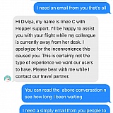 The response from hopper is fast, less than a minute. They were genuinely concerned with my issue. We had a medical emergency and had to cancel bookings and flights. They made it very easy and contacted those we couldn't cancel on our own and resolved our issues.