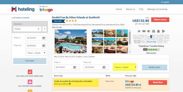 I booked through them only to find out that they quoted me a lower number regarding resort fees. When checking out of my hotel, I discovered that the fees were much higher than I had on my hoteling.com confirmation printout. Hoteling.com wouldn't make good on their mistake. I had to involve my credit card company in this dispute, only to hear back that hoteling.com said this mistake was my fault... I should have researched resort fees in another state before I booked through them. Uh, I'm sorry, HOTELing.com, I thought your name sort of implied that you're in the business of knowing hotels. I'm not. That's why I came to you to book. My big mistake.