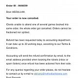 On 15th June, one day before the match, the delivery department cancelled the order and informed over mail that full refund will be made to me within 30 working days.