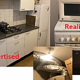 Also, when I entered in the apartment there was a mold odor and I confirm with one of the tenants that the ceiling of the shower was not treated and just painted on top. There was also a linking. The Kitchen was not as showed in the pictures actually the apartment had a broken front door, utilities and appliances not safe to use and a flammable dry vent installation. Basically a not safe apartment at all.