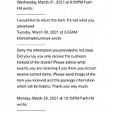 Sorry to hear about your experience. All information regarding the product can be located on the product listing prior to checkout. If you have any customer service inquiries, please shoot us a note through http://help.houzz.com.