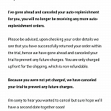 First off…. I love your products, but my last purchase was really a pain in the Azzzzz! I could not go past the screen to replenish, so I had to replenish to get the product. Bummer