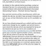 If you do not wish to to use our Any Network (Worldwide) Premium Service to unlock this IMEI or have no other IMEI to unlock, and you believe the status of your iPhone SE to be clean and can provide proof that the IMEI is not lost/stolen or in contract, please reply to this email with proof and we will be only too happy to authorise a card refund.