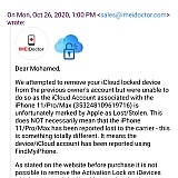 "We attempted to remove your iCloud locked device from the previous owner's account but were unable to do so as the iCloud Account associated with the (F7NN********) is unfortunately marked by Apple as Lost/Stolen. This does NOT necessarily mean that the has been reported lost to the carrier - this is something totally different. It means the device/iCloud account has been reported using FindMyiPhone.