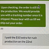The website is easy to use that is why I gave it a 2 star. I laid $10 for 1 day rush production with standard 4 day shipping. It's been 9 days and my order says production waiting. When I used their chat services I was told it was in waiting because I didn't order rush shipping as well. I explained that they charged me $10 for rush production and have not produced.