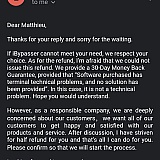 The customer service department is quick to reply and handle any and all concerns. Even though the program didn't help my issue when it turned out to be a hardware issue rather then a software one they were extremely helpful. Thank you