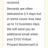 Contact issues and delays when claiming rewards this on I received the 10$ I ordered after the 100$ 3 days ago but have not received the 100$ yet Evan after contacting support about this issue