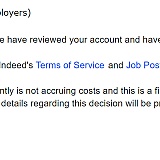 Hi Greg, to explain, we have an extensive moderation process designed to protect our job seekers and employers and also ensure a high level of quality in our search results. All Indeed accounts are subject to this review.