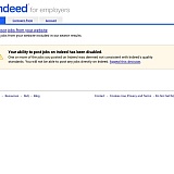 "Your ability to post jobs on Indeed has been disabled..."