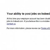 I own a recruiting firm that has been in business for over 14 years. I recently decided that we needed to hire recruiters to help us deal with a large backlog of open roles we have with our clients. I tried to set up an account and was informed that Indeed had blocked our firm from ever doing business with them! They refuse to provide us with any explanation and said there is no avenue for review! The representatives I spoke with were dismissive and rude and frankly I have never been so disgusted.