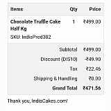 They are fraudsters... Do not buy from them. They will first attract you by giving you a discount and then once you have placed the order and made the payment, they will ask you to pay more. Even after you pay, they will not deliver or refund your money. I have experienced this myself. This is a fraud website run by CON people. Do not get trapped. Stay away for Indiacakes.