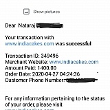 Ordered a combo cake worth of Rs 1400 on 27 april to deliver it on 30th of April 2020 between 9:30pm to 11:30pm along with midnight delivery charge of Rs250 online... however the delivery was not received at all... we even tried to contact over the phone multiple times but no one responded.The only option was given to echat and whenever we did that the agents were too rude to accomodate the requests... the money rs 1400 not been refunded yet. I will wait few more days to see otherwise will take legal action againt this fradulent organisation. A total waste.