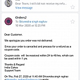 You know what I ended up with, telling raw materials are not available to make cake and I get coupons for the money I paid. It was a nuisance. You are not fit to run business, don't play with your customers.