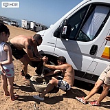 The Campervan was a big wreck. We received the camper with a leaking tire. We got stranded and had to replace the tire ourselves. No engine oil at all in the engine, no window cleaning fluid and no diesel. Full with dents and skretches.