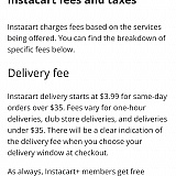 I did a home del. For free-which is not free-The del. Was free, but a service fee of $4, plus at least 25 cents to a dollar more per item from Aldi's, okay I get it convenience, but I put down $0 tip and it kept saying your person can see and your order may be delayed in someone picking up. I did not realize the person del. Order is also the person pulling the order, meaning they don't know the store and can say out of stock, bc they are shopping not barcoding like reg. Store pullers in order to easily find end cap items. Because it was Aldi there was also.36 cent charge for grocery bags. I did have a great del. And puller person. I just don't like even if you get a membership you will still be charged a service fee, and made to fee horrible if you don't tip. My thing is if you pay $10 for del. Or free with a membership, then $4 plus in fees to help the platform depending on the $ of your order, then you pay for Aldi bags each time, then you pay tax, and tip, oh and you pay anywhere from 25 cents more per item up to $2 plus more per item-you could pay up to $20 with membership so the free del. To me is a scam, bc if you pd. $25 more on groceries bc of the upcharge, then a service fee of $14 on $200 plus order, plus tip, well door dash is a cheaper deal from Hyvee with a $29-$100 membership, plus there are no fees, pay for the membership-0-fees on Hyvee and then you can or don't have to do tip on door dash, most of these are pd. $6 plus tips-I also love home del., also instant cart charges a fee for pickup, door dash is just a much better deal and HyVee employees pull the order and if there are issues you call Hyvee and within a matter of seconds you get a store credit if there are issues-I am glad I read reviews I won't do instant cart again and I definitely won't do a membership. It took me forever to get my credit car out of the system once I used Aldi with instant cart it took forever to weave through everything to find where they stored my credit card and I don't like also that random drivers pull your order and have access to your credit card that is bad bus. Bc no one to be accountable and from what I can tell you cannot contact or call anyone from instant cart