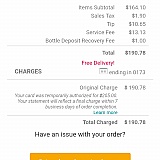 They over charge me.my receipt says 145.00 an I was charged twice for 1 item that was 9.99. So my order really was 135.00 but I paid 190.00 the hold on my card was for 205.00 so I gave the driver an 11.00 tip I received free delivery an my service fee was 14.00 that comes to 160.00 what happened to the other 30 dollars I emailed an call an they said I was charged correctly wish I could add a picture of my receipt. This was my first an last time using this app