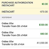 Hired instacart to pick up and deliver our grocery's which did arrive! Checked my credit card site the next day and they had stole 100.00 twice from my account, fraud! So there you go again, thieves among us at every turn!