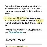 WE AT SOCALTELEVISION DO NOT RECOMMEND INSTACART SERVICE! This apparently is there ongoing practice as one of our loyal viewers advised us of this issue and it happened to us also when we looked into it. The email we were sent by INSTACART plainly described that we would be billed on December 18,2019, however we were build on December 17,2018 at 1 a.m. in the morning!