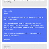 I never received a refund from paypal so if my account was deactivated due to the first reason, they are basically blackmailing me into paying more money for a refund I never received just to get my account back.