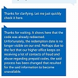 I wrote them, they told me that they canceled it by safety. Asked me to send a document for verification in order to send me other code. I sent it.