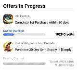 Ironsource is a hook-in for games to promote products and sales by giving in game rewards for real life purchases. Their hook in sucks... it regularly fails to register the purchase and give credit for it. I've provided them with screenshots showing the purchase, the lack of in game credit and no response. I've shown them the game developers customer service showing where I did get credited on 1 purchase and even it doesn't show in their hook in--which is where you are supposed to go to prove you completed something or something is In Progess.