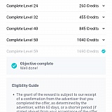 Downloaded and played one of your games you specified to get credits. Completed the highest level requested, I received the reward for the final level but nothing for the lower levels I OBVIOULSY would have had to complete to get to that highest level.