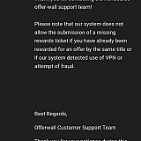 They give me the first reward but the rest of them they scam. Although i send them a ticket but there's no respond, so DO NOT DOING THEIR OFFER, SCAMER