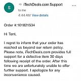 I recently ordered an IPod Touch from ITech Deals but the following morning I realized that it didn't have enough storage for my needs. I sent an email to ITech explaining my mistake and, within 24 hours, I had a response informing me that they had cancelled the order and refunded the purchase price. Can't ask for better service