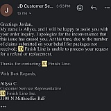The refund process only added to the frustration, as both JD Sports and FinishLine insisted on returning the incorrect shoes before considering a refund.