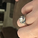 Excellent product that I really enjoyed. Looks and feels like a real diamond and have received tons of compliments. The quality is amazing, it's durable and doesn't lose shine (doesn't leave fingers green as it's silver).