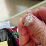 Ring is very pretty with a great sprinkle. So delicate for my small fingers, goes terrific with my blue topaz same style band.