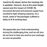 Hi, thanks for the message. We understand your frustration and thank you for your patience. We’re doing our best to make sure customers receive their items as quickly as possible. Regrettably, despite our best efforts delays may still occur due to issues with the shipping company. Sorry again and hope for your kind understanding!