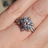 My boyfriend surprised me with this ring, called it the practice ring before the actual big day. I absolutely love it! Its so elegant with the crystals and the shine. I received so many compliments on it.