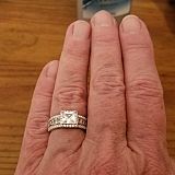 First at all the ring looks better in person, the picture doesn't do justice at all, super beautiful and look like a very expensive real diamond ring, you can't tell if it's diamonds or not. Very fast shipping all and true to size