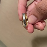 So I took the ring to a local jewelry store and they confirmed that the material is cheap and there's no way there's silver or gold plating on that ring (the description said: silver&gold plated).