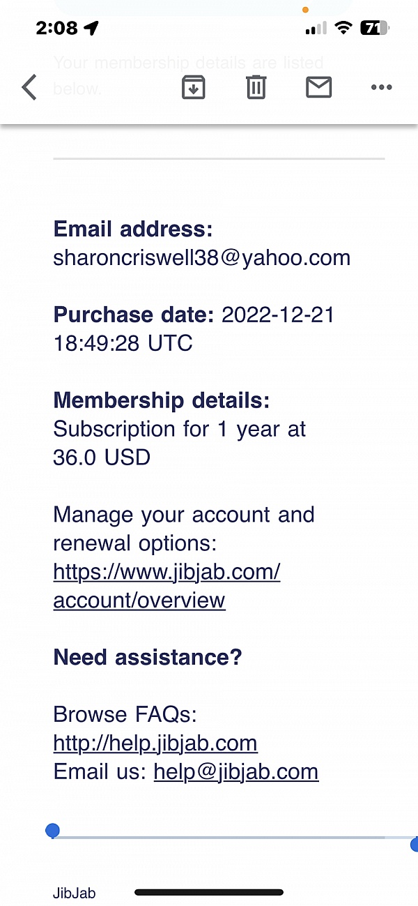 I just wanted to make sure that you were refunded in full, and that you would not be charged again in the future. Have you received a refund? If not, please provide the email address you used to sign up for JibJab and I will be happy to refund you in full.
