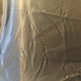 This robe is supposed to have a wreath around the name and the word Bridesmaid. With full light, you can barely make out the name, but can't see the wreath or word bridesmaid at all.