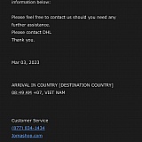 And when I complained why I still haven't received my order, however my package arrived in Vn on 03-March, you just asked me patient, asked me continue waiting, and asked me contact to DHL?